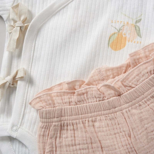 Pink Fruit Print Romper & Shoes Set